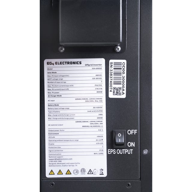 The EG4 6000XP is a 48V 120/240V split-phase, off-grid inverter/charger with a built-in solar charge controller. It boasts the ability to take in 8kW of PV power and efficiently deliver 6kW of power, all while charging your battery bank. You can parallel up to 16 units to achieve an impressive 96kW of output power and control multiple stations and units using the new EG4 monitoring software.