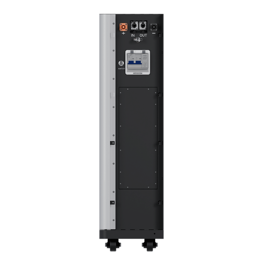 Four concealed heavy-duty Fuma wheels facilitate movement of the battery without detracting from the elegant design. An anti-tipping mount on the back anchors the battery to the wall.